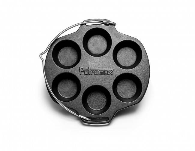 Die Petromax Muffinform aus Gusseisen erweitert die Riege der Petromax Gusseisenprodukte nach den Kastenformen und der Gugelhupfform. Mit Platz für insgesamt sechs leckere kleine Küchlein kannst du die Muffinform dank praktischem Henkel mit Einkerbung direkt über dem Feuer, auf der heißen Glut und im heimischen Backofen verwenden. Außerdem passt die Gussform in die Feuertöpfe ft6 und in den ft9.